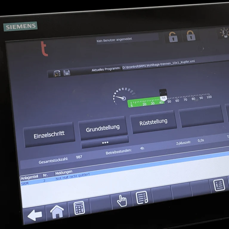 The SRM is equipped with a completely electronic preselection of the flanging geometry. The stop position and all strokes and machining operations are servo-electrically controlled and can be called up via a touch panel.