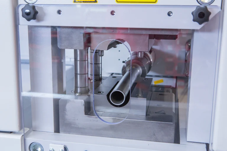 Decisive for the exact machining time is which material is used and which shaping is to be implemented. The machine carries out the processing quasi automatically if it is possible to call up the tube size with the necessary process parameters. In individual cases, the clamping lengths for machining are 1 to 1.5 x the pipe diameter.