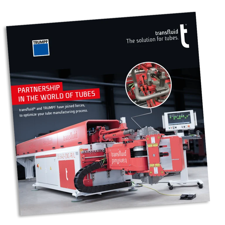 Entrambe le aziende sono accomunate da una forte spinta all'innovazione, con un'attenzione particolare al cliente e alle sue esigenze. Per questo motivo, transfluid e TRUMPF uniscono le forze per offrire soluzioni per l'intera catena di lavorazione dei tubi, dal taglio laser alla piegatura e all'ulteriore lavorazione.