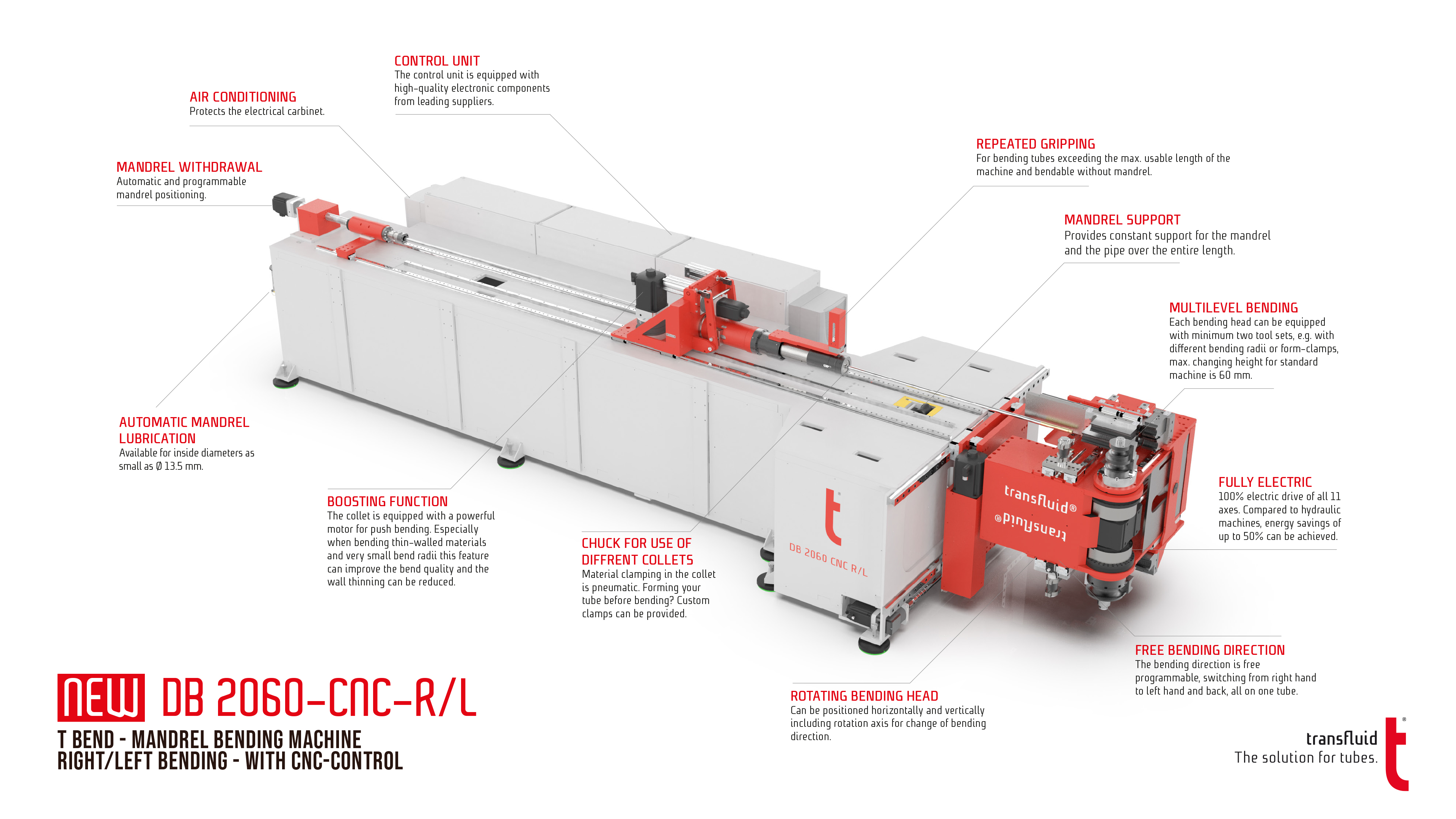 Bend tubes up to 2 3/4" diameter right and left with our new transfluid DB 2060-CNC-RL tube bending machine.