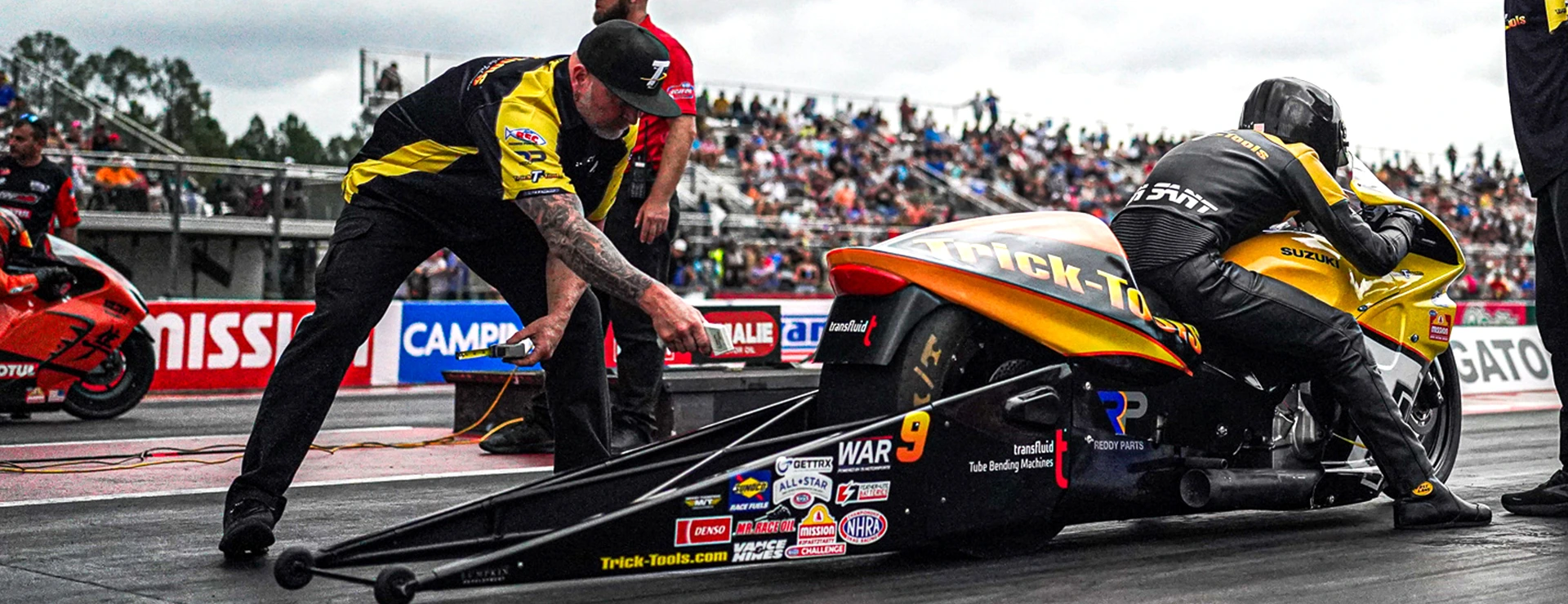 Simpsonville/South Carolina – transfluid, a leading global manufacturer of tube processing machinery and tube bending machines is pleased to partner with „Trick Tools“ to compete in the NHRA Pro Stock Motorcycle Series in 2023.