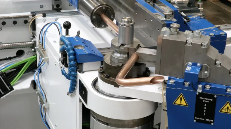 A transfluid t bend DB 642 CNC RL bending machine is used to provide this flexibility. The CNC-controlled bending machine with rotating bending head can bend steel, stainless steel and non-ferrous metal tubes as round tubes or profiles from ø 6-42 mm. And with tube lengths up to 4.5 metres. The bending head can be positioned horizontally or vertically, including an axis of rotation to change the bending direction. The electrically driven bending machines are designed for high volume production and are energy efficient thanks to economical servo technology.
