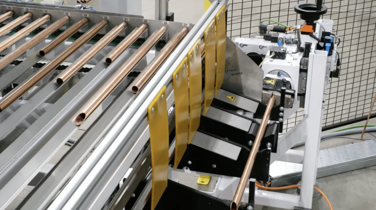 More than 80 kilometres of copper tube are processed each year for the 12,000 different tube geometries that are now available, and the trend is rising. One of the main reasons for planning a new automated tube production system was to be able to produce these geometries with one system, in addition to the increasing shortage of skilled labour.