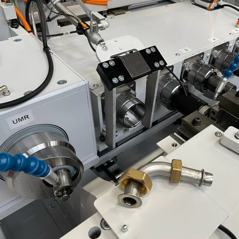 The UMR is equipped with a completely electronic preselection of the flanging geometry. The stop position and all strokes and machining operations are servo-electrically controlled and can be called up via a touch panel.